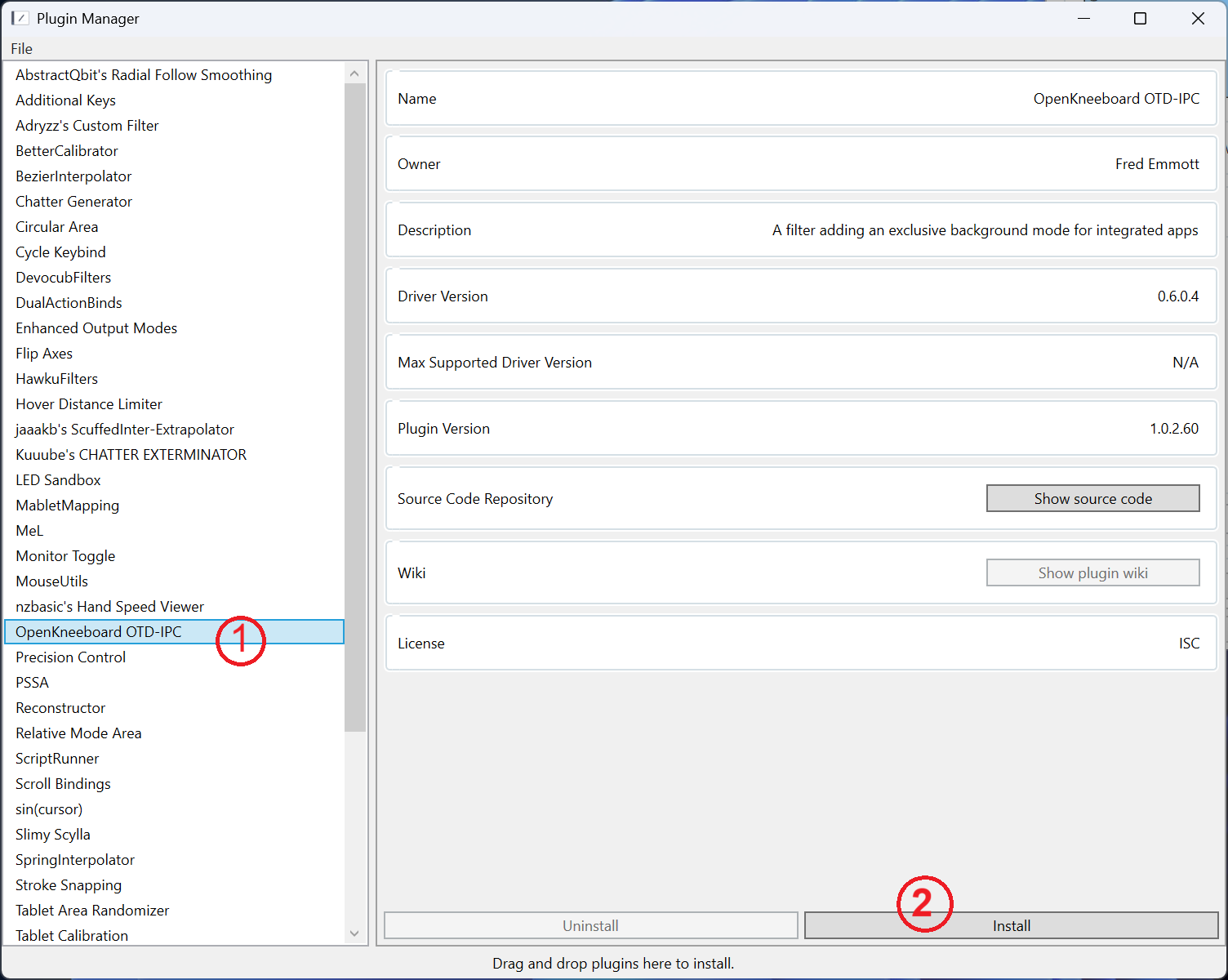Open OpenTabletDriver, then open its plugin manager: